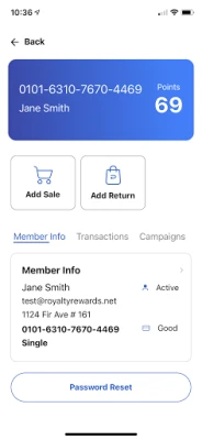 This application allows merchants to process real-time loyalty transactions, view and redeem marketing campaigns, add new member information, and update existing member information. It is not for any other purpose.