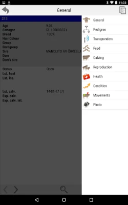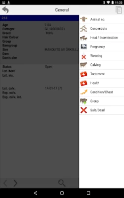 The following actions on an individual or group level can be entered: - Heat/Insemination - Calving - Health & treatments - Sale/Death - Pregnancy check - Weight measurements - Concentrate amount - Weaning - Group changes