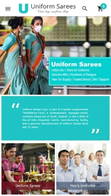 www.uniformsarees.in is India’s first ever e-commerce portal for uniforms. We are an independent arm of a textile conglomerate with integrated manufacturing facilities, a young, dedicated team of professionals aspiring to provide you the best platform to dress up your workforce.